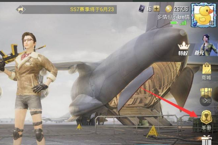 2、进入游戏大厅后,点击“手册”。
