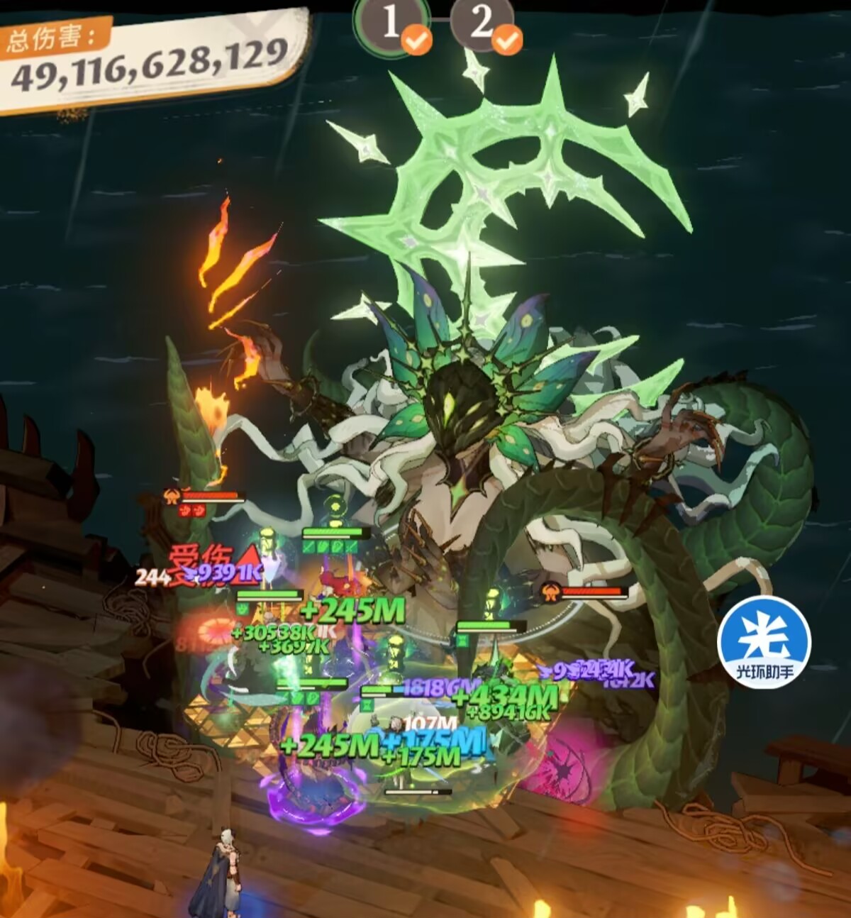 最后搭配骨蛇补伤害,骨蛇的输出也是很高的在队伍中仅次于凤凰!骨蛇也比较脆,开大也会消耗生命值,不过自身有吸血!而且站在骨王的后面可以吃到骨王的分摊伤害被动加上死鱼眼的治疗也是可以极大提升骨蛇的生存力,从而持续打出伤害。
