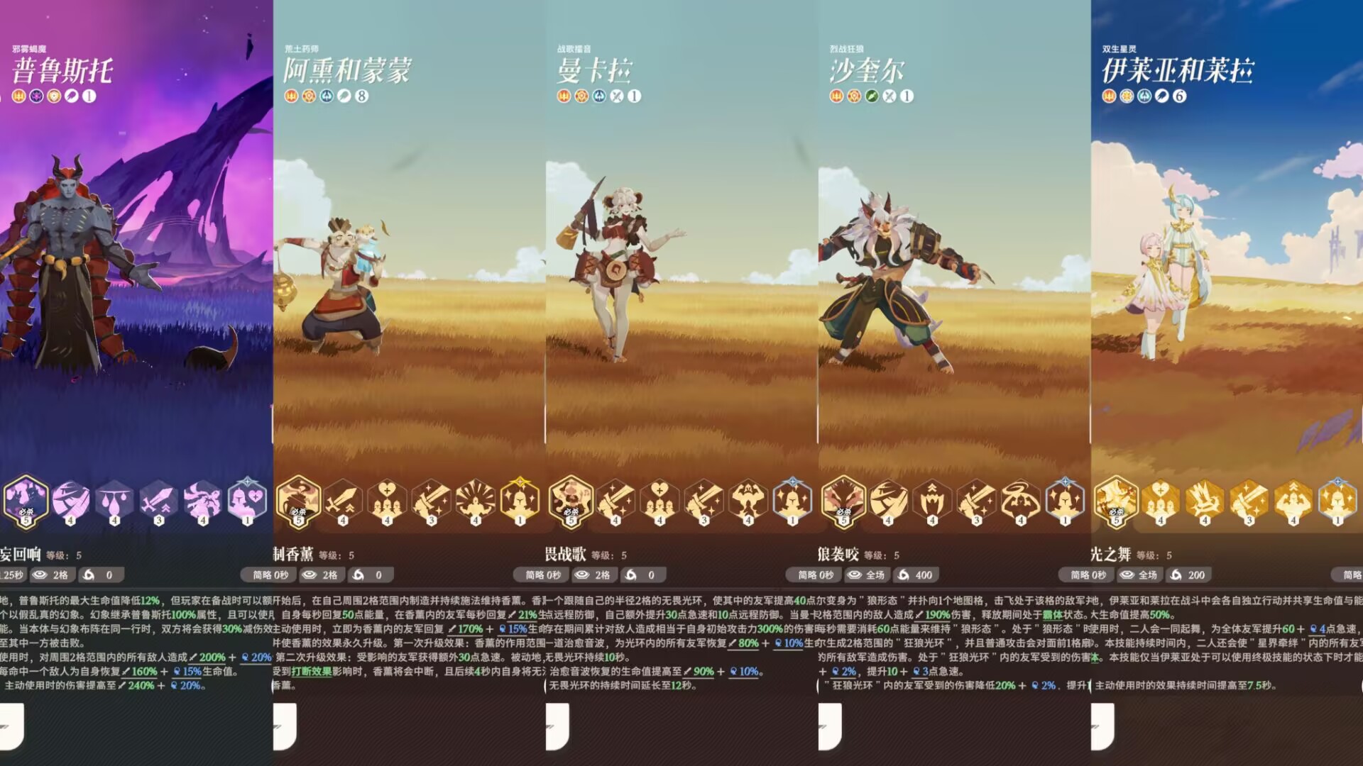 解析:这套搭配伤害也高,吃到蛮血天赋加成。完全不会比第一套低,主要就是利用蝎子和奶爸的流血来打伤害,然后狼人也有一定的输出,同时也有增益。然后在吃曼卡拉和双子的增益进一步流血强化伤害。