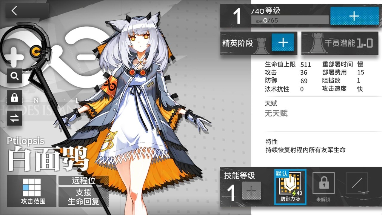 明日方舟白面鸮适不适合萌新?很多新玩家表示抽到了白面鸮,但是不知道是不适合自己用。下面就为大家介绍分析一下。其实白面鸮的话,对于萌新来说,可以用来开荒,在不知道敌人和路线的情况下,先把大家的技力回复加快0.3每秒总没错。下面请看详细介绍。