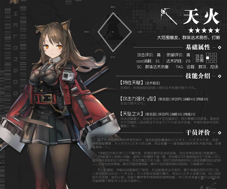 因此,在开启技能以后,阻挡干员的放置就会变得尤为重要;虽然重要但是简单,将阻挡干员放在天火攻击范围外一格即可,无论是常态还是普攻都可以打出伤害。