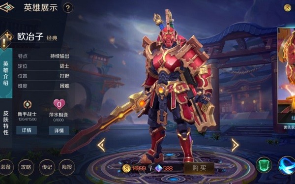 欧冶子定位:战士。推荐走打野位。