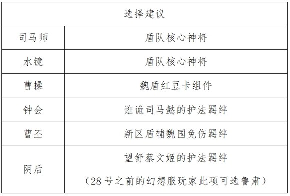 首月后,双心愿单:司马师+水镜(5星后可换曹操)。