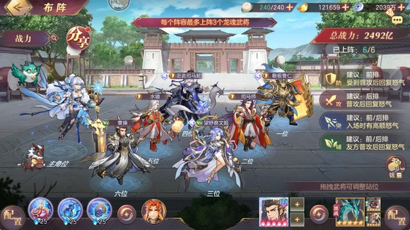 该阶段,中小氪目标为养成2个5红武将,其中,蔡文姬为系统赠送位置固定;另一个5红武将,盾辅首选5红夏侯惇;次推曹操补强pvp。高氪玩家,除5红夏侯惇外需要依次补强5红曹操和5红孙权。