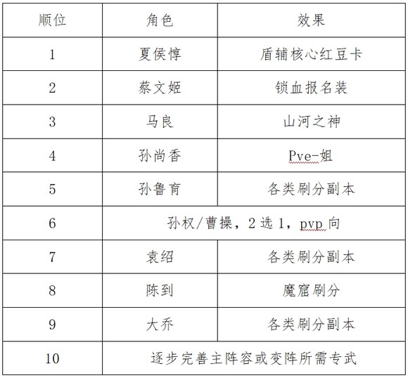 新区过渡阵容①(持续至开服第45天,开启蔡文姬命魂活动):