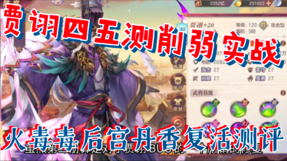 【三国志幻想大陆】贾诩四五测削弱实战,火毒毒后宫丹香复活测评