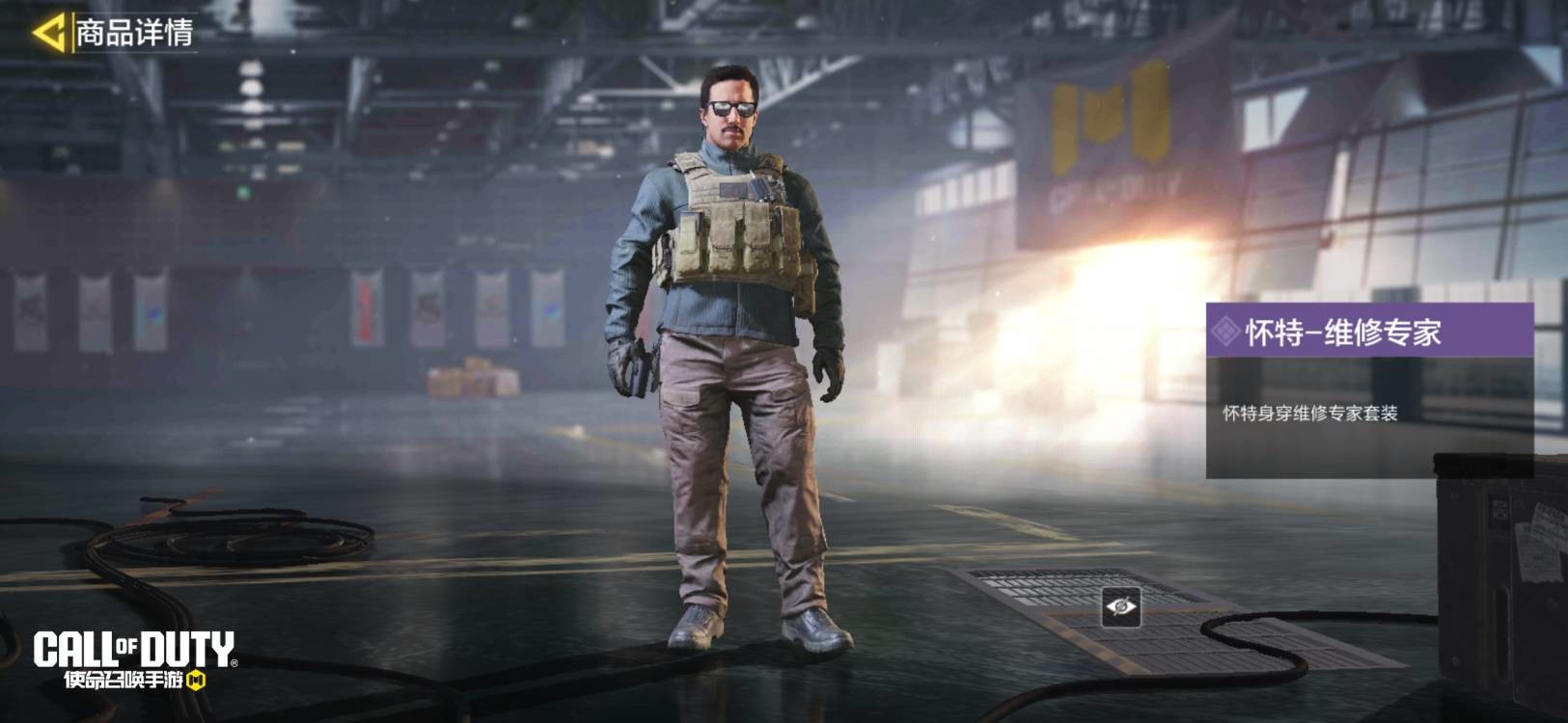 怀特-维修专家身穿简练的休闲服,但是内心从不敢放松,身上的战术背心时时刻刻提醒着他不能忘记自己的使命。