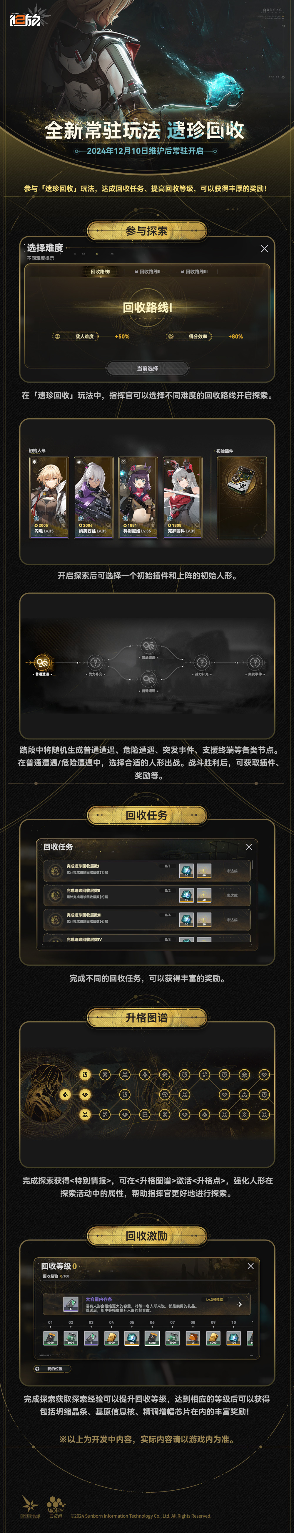 尊敬的指挥官,12月10日维护后,游戏内将开放全新常驻玩法【遗珍回收】。