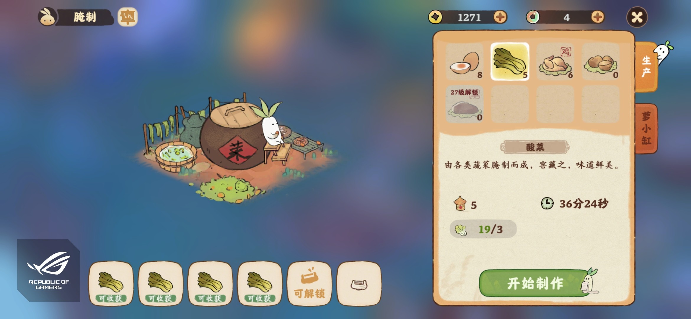 酸菜是在腌制工坊需要三颗白菜腌制而成的,耗时36分钟左右