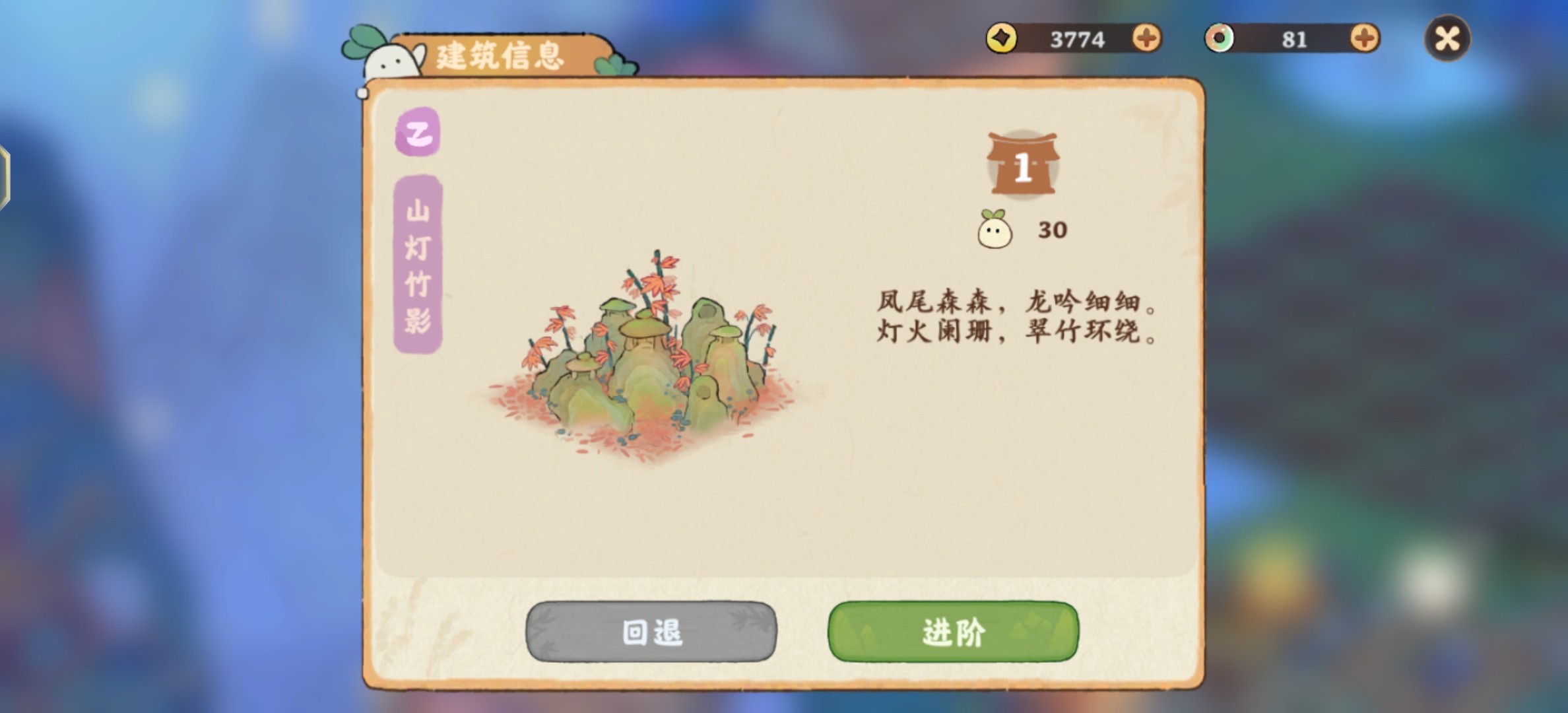 把两两个都收起来,不放放置,然后再去营造里选择收纳,并找到那个物品,点击详情,然后再点击进阶,最后再选择升阶的那个材料,并点击升阶就可以了。