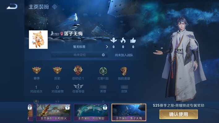 主页装扮——落子无悔,在S25赛季中,荣耀挑战-挑战值达15获取。荣耀挑战达到王者段位开启,继续提高星级或者参与巅峰赛获得积分,可获得挑战值。