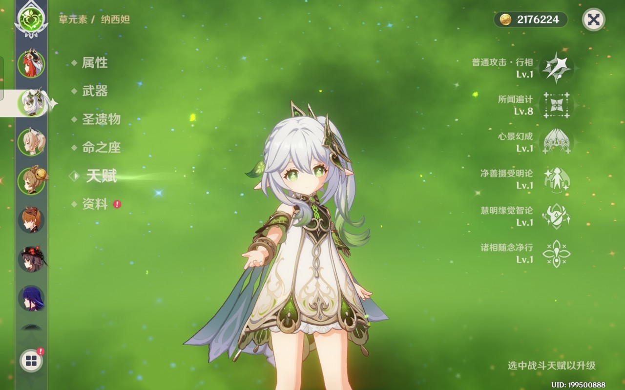 草神天赋:优先元素战技(9),再大招(9),普攻不升(1)加点在框框