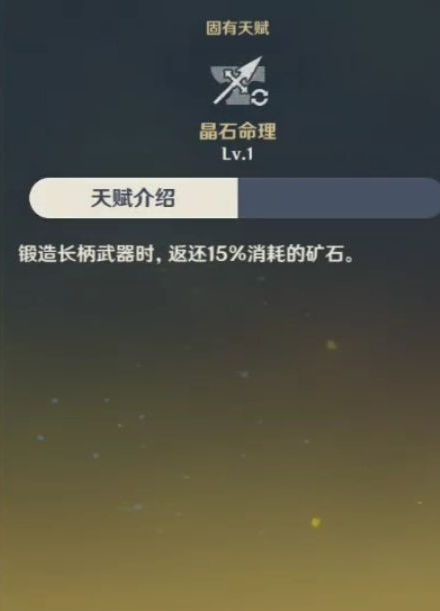 锻造长柄武器时,返还15%消耗的矿石(岩神秒变打铁男)