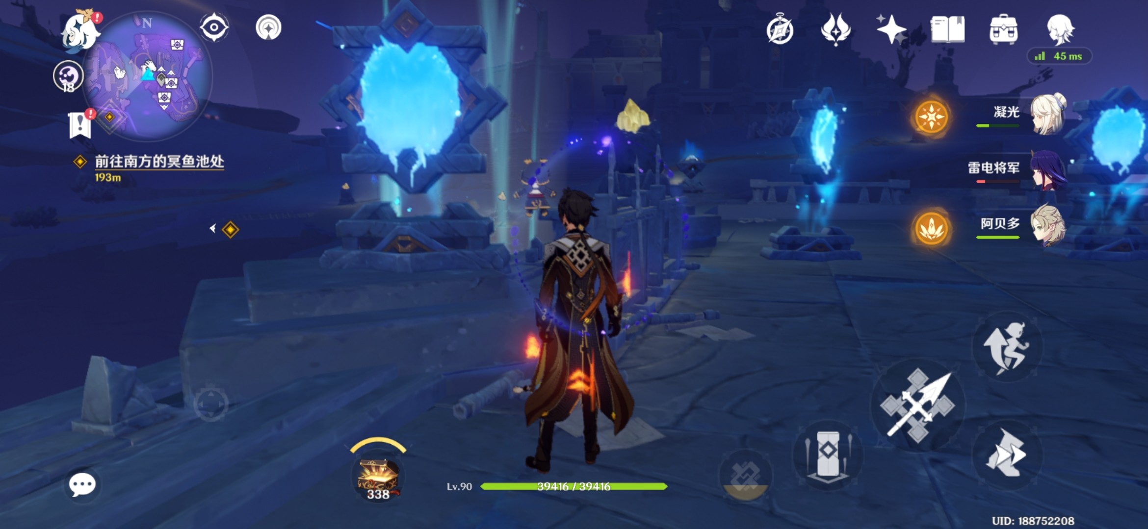 然后把右侧水镜用冰元素冻结一下