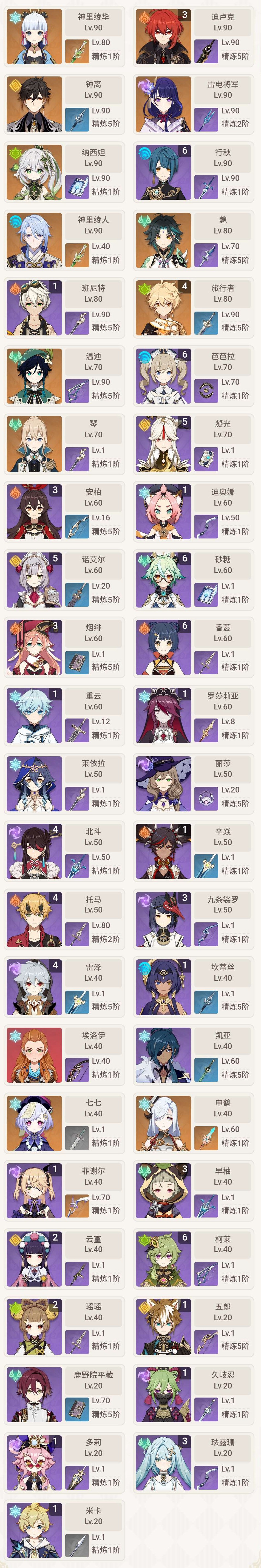绫华,猫猫,香菱,班尼特
