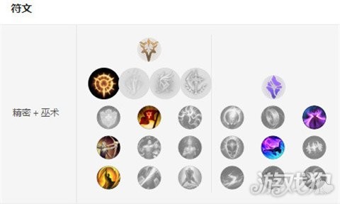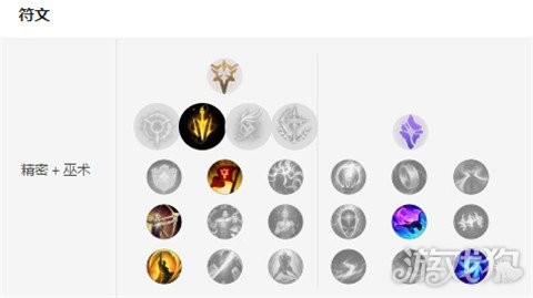 主系精密基石致命节奏-凯旋-欢欣-致命一击。致命节奏可以让大嘴更为高效的利用自己的W技能进行输出后期搭配夺萃效果更佳。