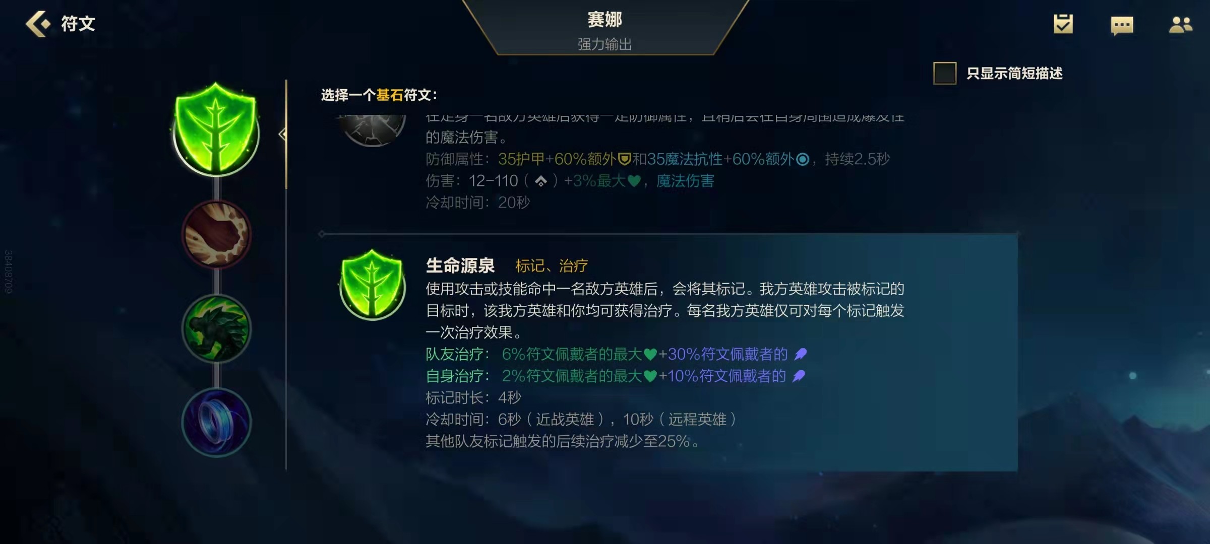 塞纳在4秒内攻击同一个敌人时将会触发被动的百分比伤害,因此塞纳非常适合佩戴不灭之握这个天赋,1A连招可瞬间触发被动爆发,消耗能力非常强。