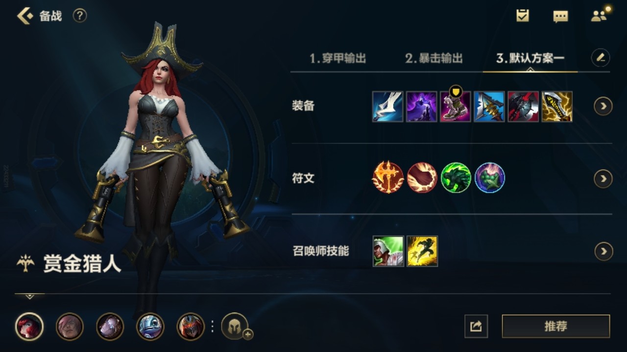 ★第四件:在敌方前排比较肥的时候我们可以出百分比穿甲,轻语或者怨恨可以根据局势二者选一个