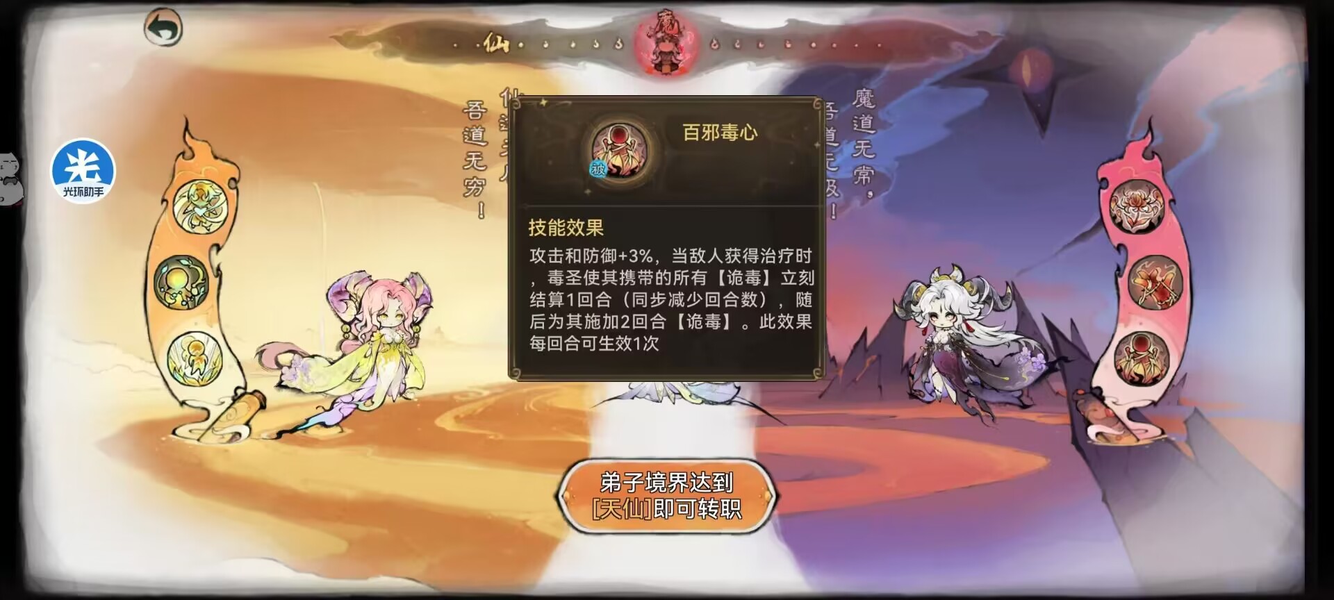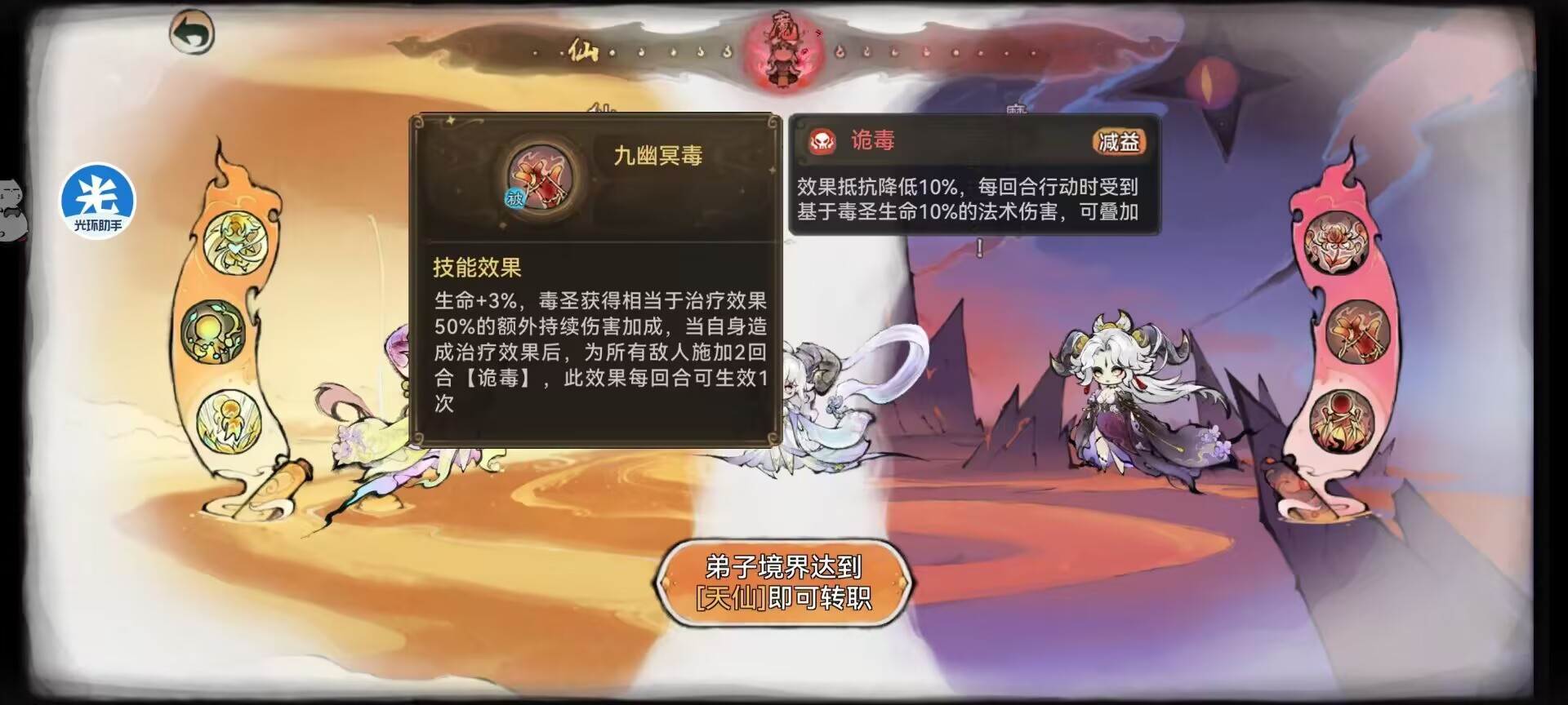 敌人获得治疗时候,毒圣可以让其所有携带的【诡毒】立刻结算1层伤害,然后在目标添加2回合的诡毒。